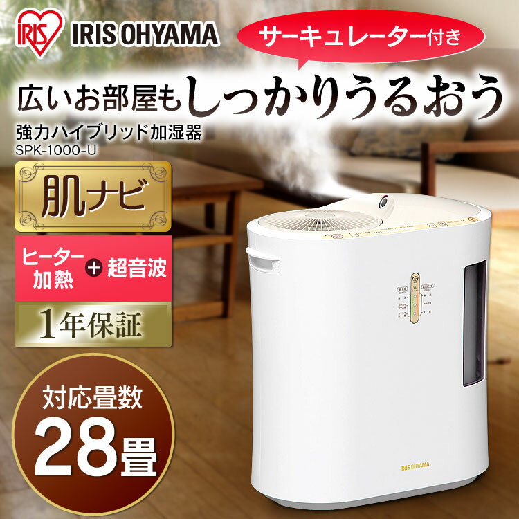 加湿器 大型 17畳 28畳 インフルエンザ アイリスオーヤマ SPK-1000-U 加湿器 強力ハイブリッ 木造和室 1000ml 寝室 オフィス 超音波式 加熱式 抗菌 ウイルス サーキュレーター タイマー付 静音 あす楽対応