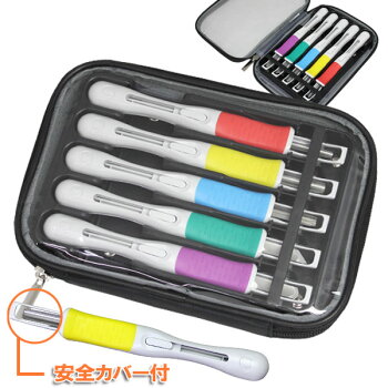 彫刻刀セットラインナップ 安全ガード付特殊加工ステンレス製のグリップ彫刻刀Sセットです。